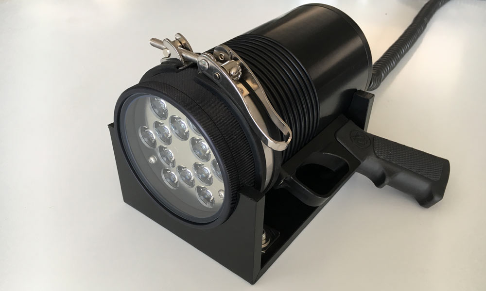 Für noch mehr Lichtleistung als bei der LED 3000 gibt es den Handsuchscheinwerfer LED 5000 mit 5000 Lumen Lichtleistung, der sich in der Größe zur LED 3000 lediglich durch den 30mm größeren Durchmesser, 4 Lichtkreise und einer Betriebspannung von 12-24V unterscheidet.
