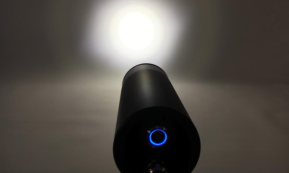 Der blaue LED Ring am ein/aus-Schalter leuchtet, sobald der LED 3000 über einen Zigarettenanzünder oder eine Bordsteckdose mit Spannung versorgt wird und ermöglicht ein schnelles auffinden und in Betrieb nehmen in dunkler Umgebung.